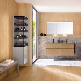Das modulare Konzept von Lin20 erlaubt flexible Kombinationen von Waschtischunterschränken und Anbauschränken.